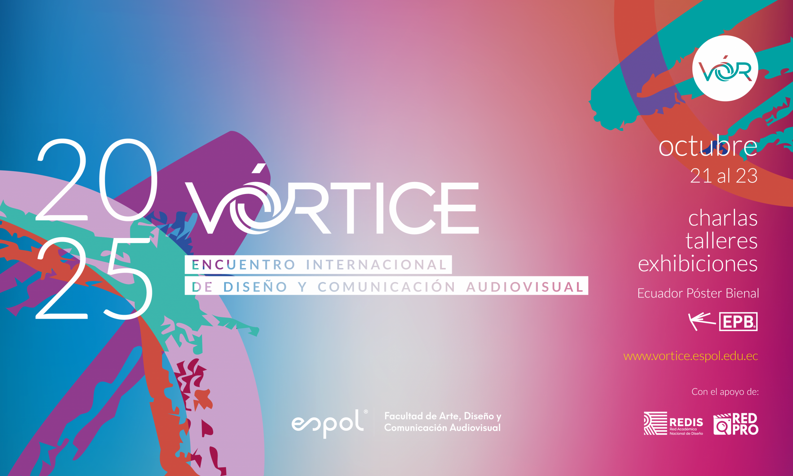 VÓRTICE es un encuentro internacional que promueve espacios de interacción y socialización del diseño y sus áreas dentro de la comunicación visual, la producción audiovisual y el diseño de producto, buscamos remarcar el aporte de las carreras de FADCOM a la sociedad.